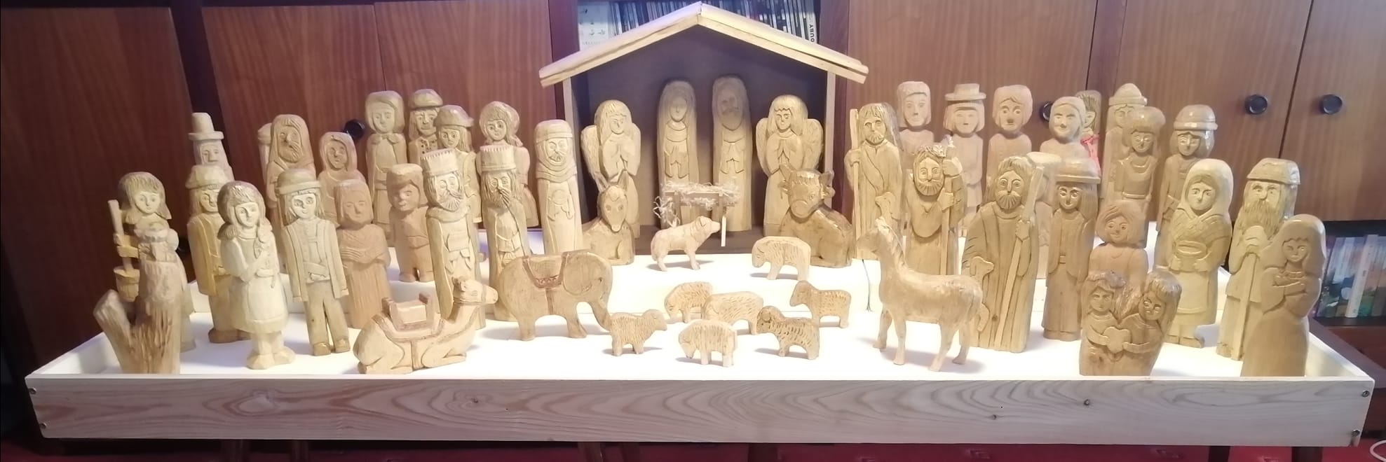 Když Otec Rylko na jednom setkání Rychlé roty vyslovil přání umístit ve filiálním kostele nový betlém, tu mu členové RR sdělili, že mám doma takový „nějaký“, který by se tam mohl vystavit… Otec Rylko s tím souhlasil. A tak jsem ještě k těm mým figurkám dovyřezala 3 pastýře, 2 anděly, osla, býčka, ovečky, velblouda a slona. Bylo mi řečeno, že se na betlém chodí dívat děti a ty se těší na ta zvířátka. Pro ně jsem figurkám přidala i koníčka, kterého jsem nevyřezala, je od řezbáře pana Halouzky z Jiříkova. A také pejska, kterého jsem kdysi koupila v Karlovicích od místního řezbáře.