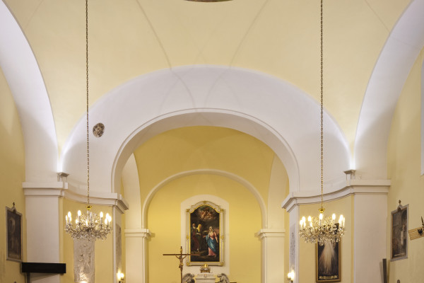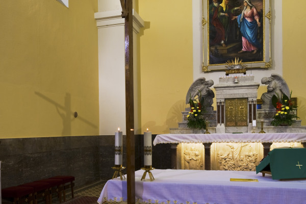 Postaven byl na panské zahradě a zasvěcen „Navštívení Panny Marie“. Stavbu provedl zednický mistr Antonín Engliš. Stavba byla ukončena již za působení faráře P. Jana Herbera 1. prosince 1814. Svěcení kostela se uskutečnilo 9. listopadu 1931 olomouckým světícím biskupem Mons. Dr. Janem Stavělem.