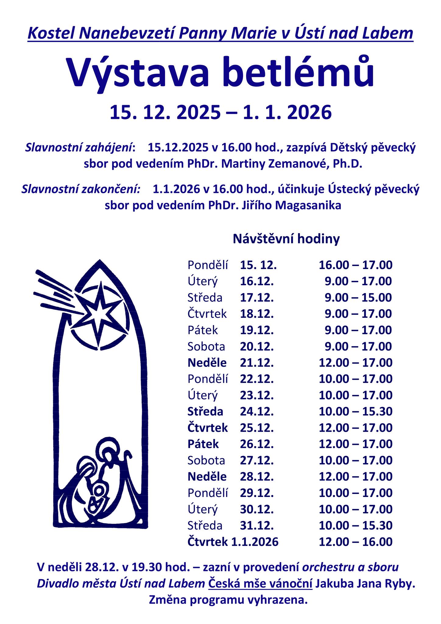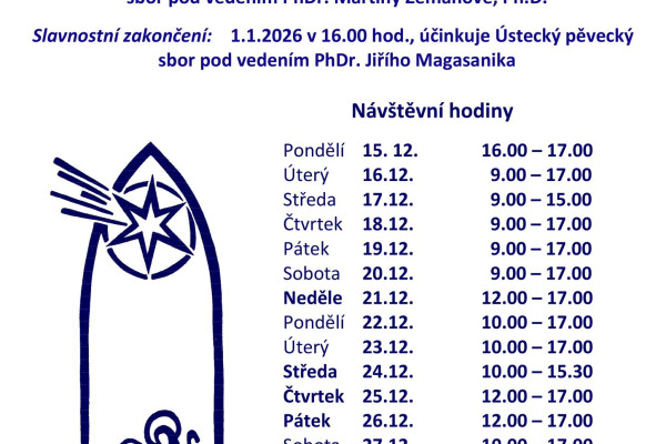 Slavnostní zakončení výstavy betlémů - Ústecký pěvecký sbor Slavnostní zakončení Výstavy betlémů, účinkuje Ústecký pěvecký sbor pod vedením PhDr. Jiřího Magasanika |