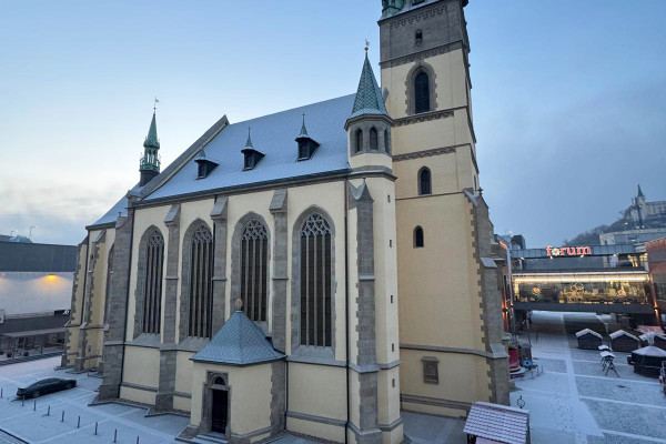 Ke kostelu je možné přijít z vlakového hlavního nádraží ulicí Hradiště, dále kolem kostela sv. Vojtěcha a podél nákupního centra Forum (asi 5 min.). Z autobusové zastávky Malá Hradební se dostanete ke kostelu průchodem nákupního centra Forum (asi 1 min.). Nejbližší zastávky MHD: Malá Hradební (asi 1min.) a Mírové nám. (asi 2 min.).